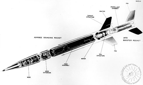 Peter Alway plans   real Aerobee rocket Above: Aerobee USAF-2 displays its paint job before launch. See larger picture.