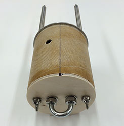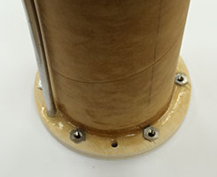 I bonded the ceramic to the aluminum plate and stainless steel struts using Cotronics high-temperature epoxy (4700). This required an elevated-temperature cure, but this part is so small I was able to use a toaster oven.