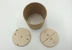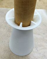 The final part is the aft end of the interstage, which acts as the forward cap of the booster. The last piece I fabricated was the cone itself. This has to survive the exhaust from the sustainer motor directly blasting down onto it, for at least a brief time, which meant that I would have to use a ceramic material. Cotronics makes a machinable ceramic (Rescor™ 902), which I was able to machine on the ShopBot.