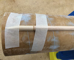 Once the forward end was done, it was time to go back and finish up the aft end. This is a very interesting section, not only because it contains the forward half of the interstage, but also because it has a tail cone that the compound curved fins need to match. (See the next section on making the fins.)
