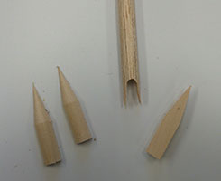 The final detail for the sustainer was the three conduits that run from the fins up to the forward end of the main airframe. Once again, these were cut out on the CNC router, the tips from basswood (for strength) and the length from balsa (for light weight).
