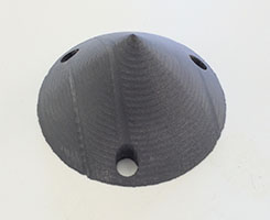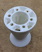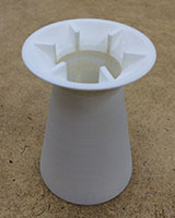 The pictures above show a top view of the cone, as well as a bottom view. I decided to hollow out the bottom to reduce weight. Overall, it came out OK. There were some strange machining artifacts and the ceramic was a bit brittle for the fine edges, but I was able to fill/sand these out.