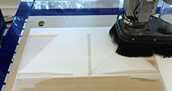 Above is a perspective view of the two faces of a single sustainer fin profile. Once the parts were drawn, I used Vectric PartWorks 3D as the CAM system. This program is very straight-forward to use, just a wizard you walking through the process of laying out the shape in the material block and producing the rough-out and finishing tool paths.