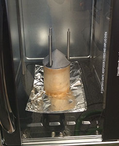 The ceramic cone cracked slightly during curing, so even the relatively low temperature must have caused it to expand or contract slightly. We'll see how it survives in flight.