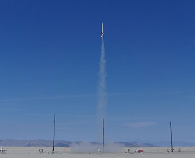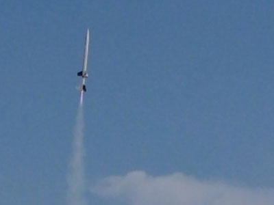 Above you can see the rocket just before booster burn-out; still together and no sustainer ignition yet.