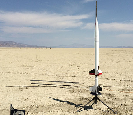 Here it is on the pad, out in the ever-beautiful Black Rock desert. It was nice that it's still just a "complex J", so I could fly it off the middle rack.