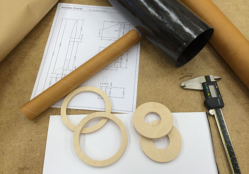 The first task was to figure out exactly what parts I would be using. I had some 3.9" carbon fiber airframe left over from a prior project, which I considered using, but it turned out to be heavier than phenolic. In order to keep things as light as possible, I decided to keep it simple and use phenolic for the airframe and ¼" plywood for bulkheads and centering rings.