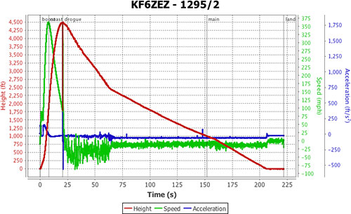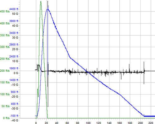 This was my first flight of a TeleMetrum flight computer. Actually, I few two: one in the sustainer (backed up with an R-DAS) and one in the booster. The one in the sustainer worked just fine, but the one in the booster got confused.