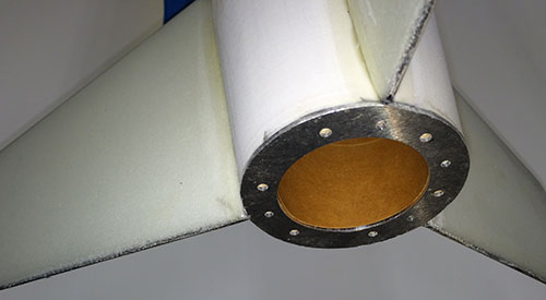 Once the plastic transition pieces were bonded in place, the aft end was finished off with an aluminum plate and external fillets applied. This aluminum plate is important for precise registration of the interstage struts and to provide a solid aft end.