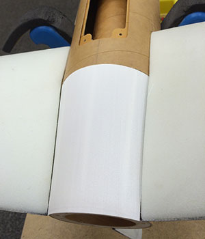 Once the interstage was complete, it was time to move on to the forward end of the sustainer. I decided to put the bay at the front end, right below the plastic nose cone. The bottom of this section of airframe corresponds to a paint color change in the prototype (there is a white section above where the ribs end).